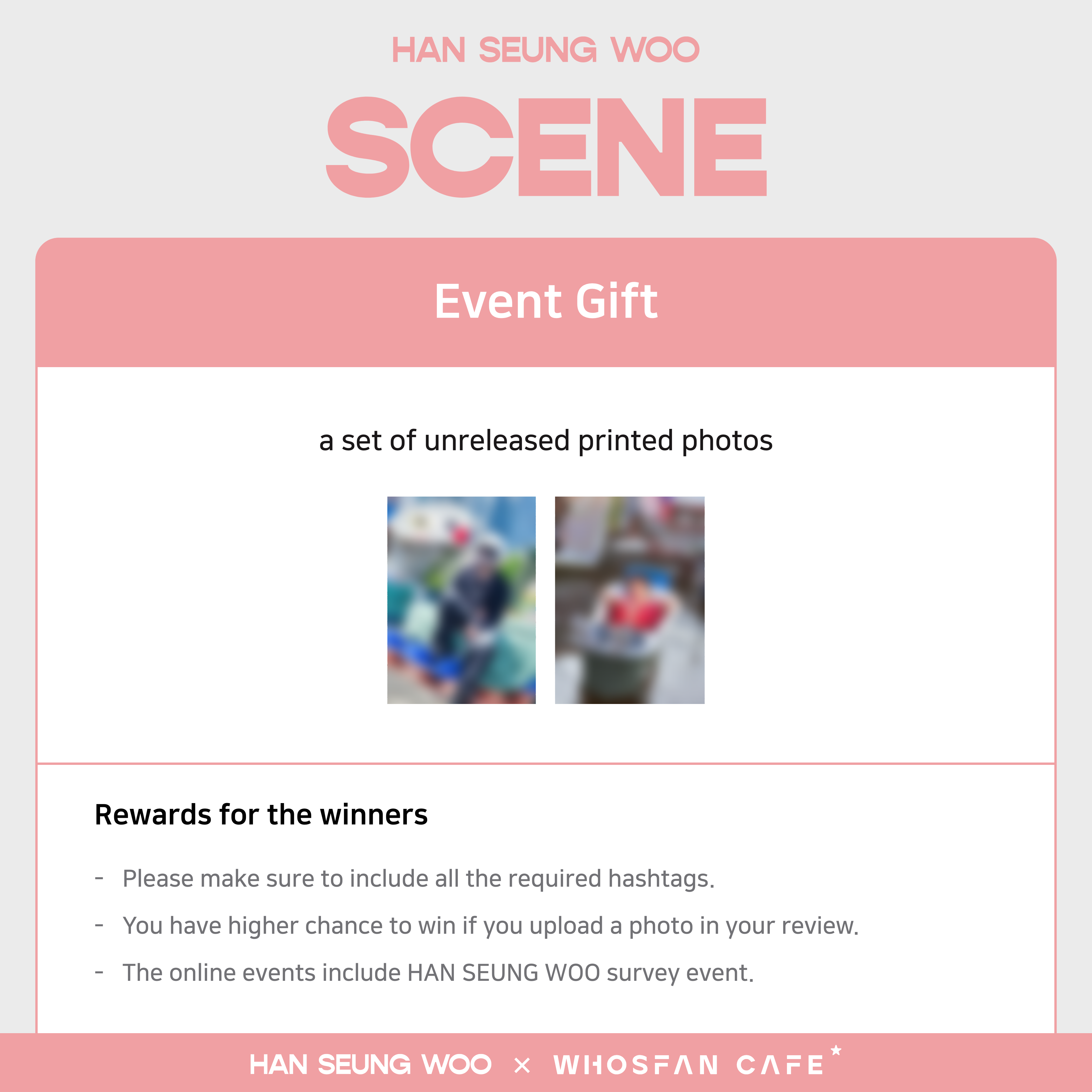 1. Visit HAN SEUNG WOO [SCENE] Official Themed Cafe and write a review on social media channel