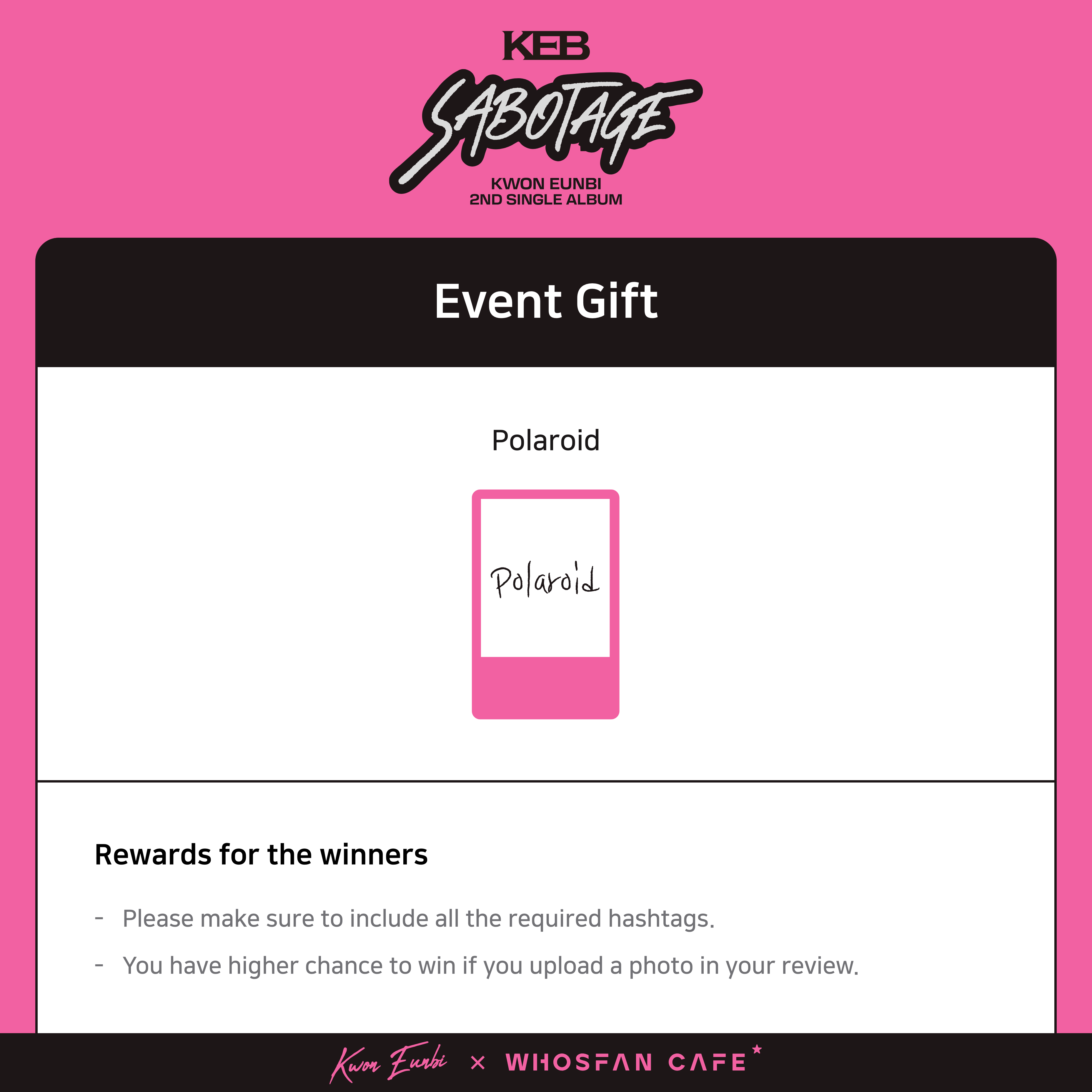 1. Visit KWON EUNBI 2nd Single Album [SABOTAGE] Official Themed Cafe and write a review on social media channel