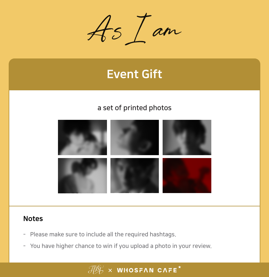 1. Visit TEMPEST(템페스트) 7th Mini Album <As I am> Official Themed Cafe and write a review on social media channel