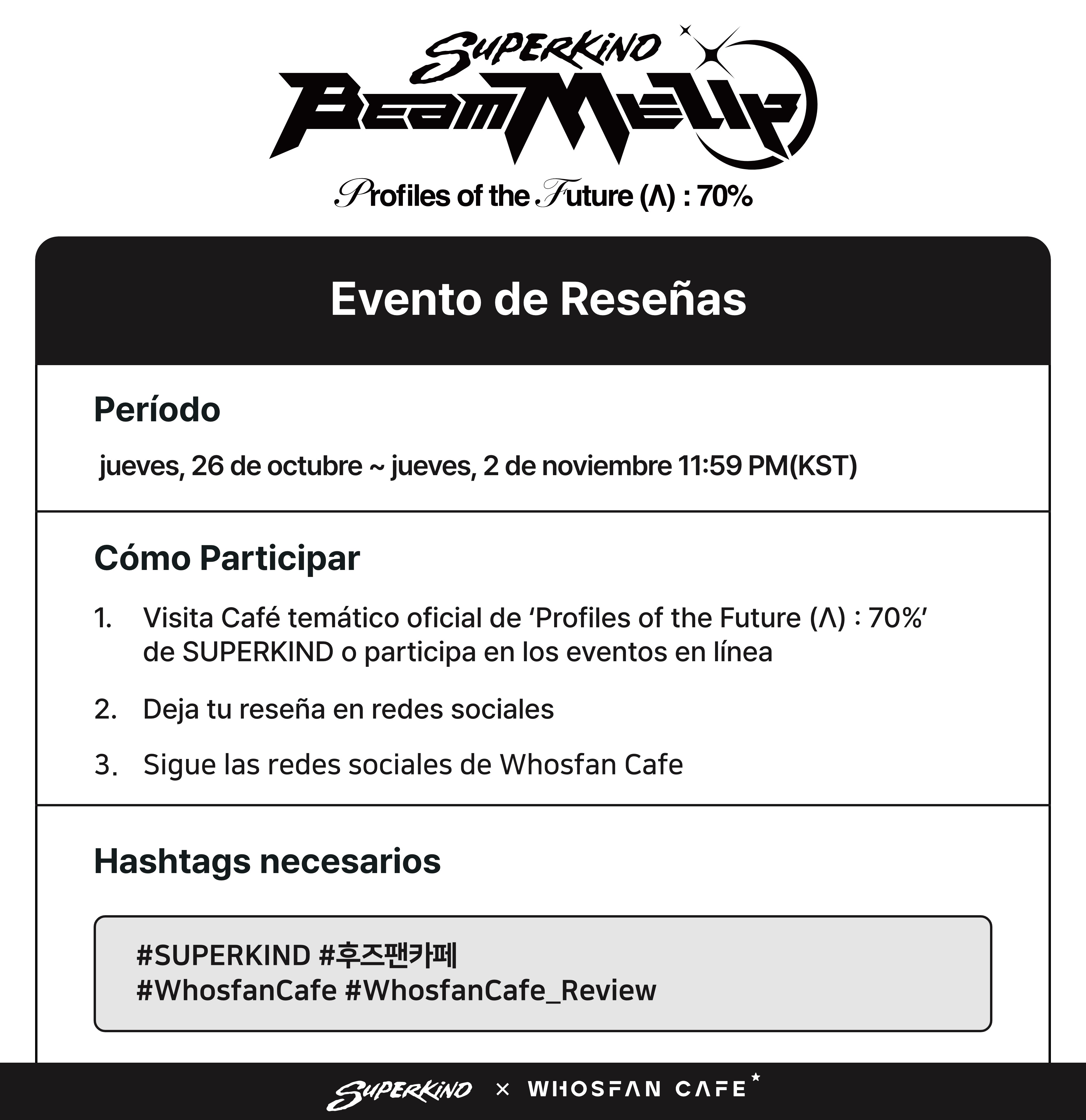 1. Visita Café temático oficial de 'Profiles of the Future (Λ) : 70%' de SUPERKIND y escribe una reseña en tus redes sociales