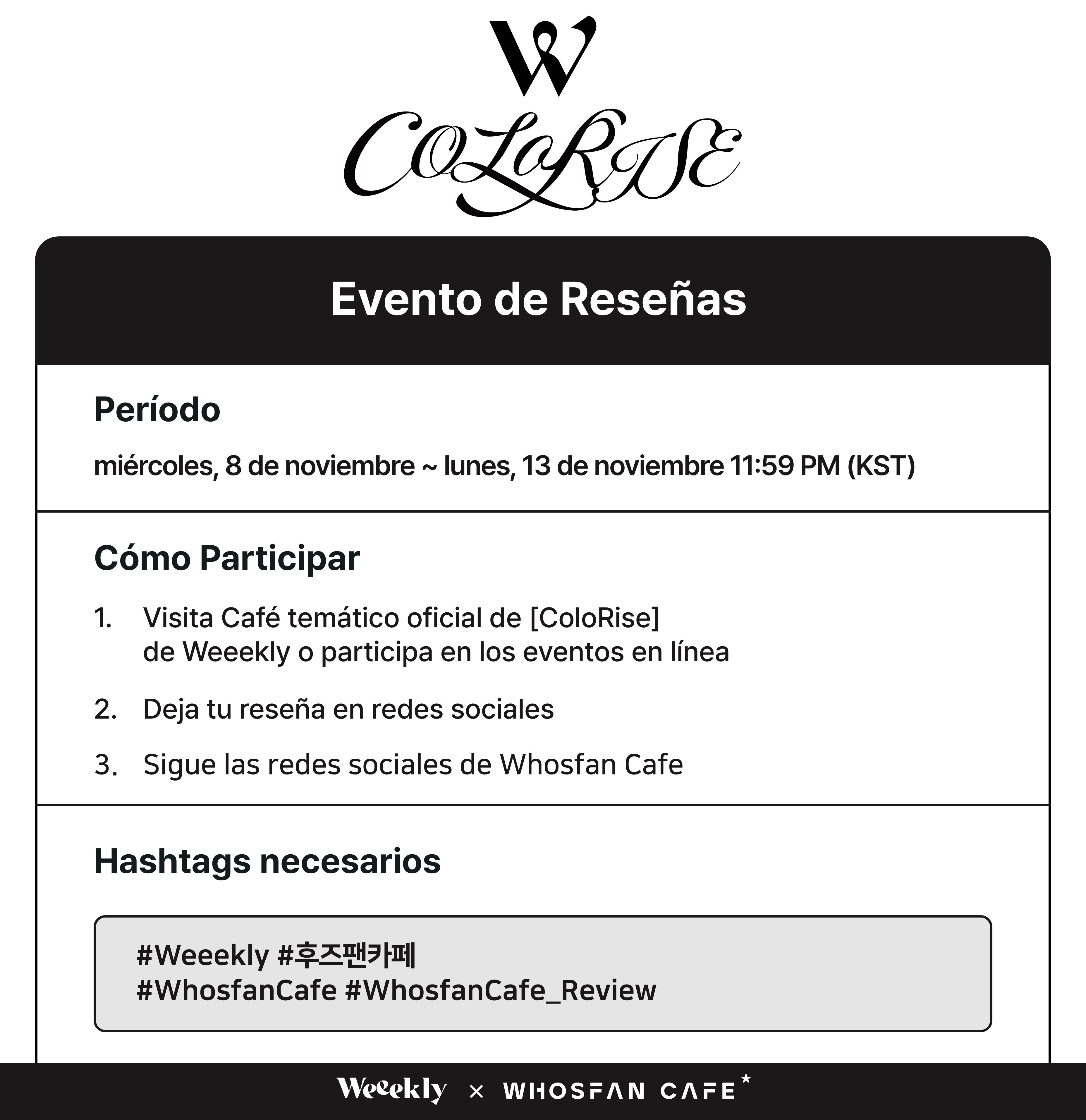 1. Visita Café temático oficial de [ColoRise] de Weeekly y escribe una reseña en tus redes sociales