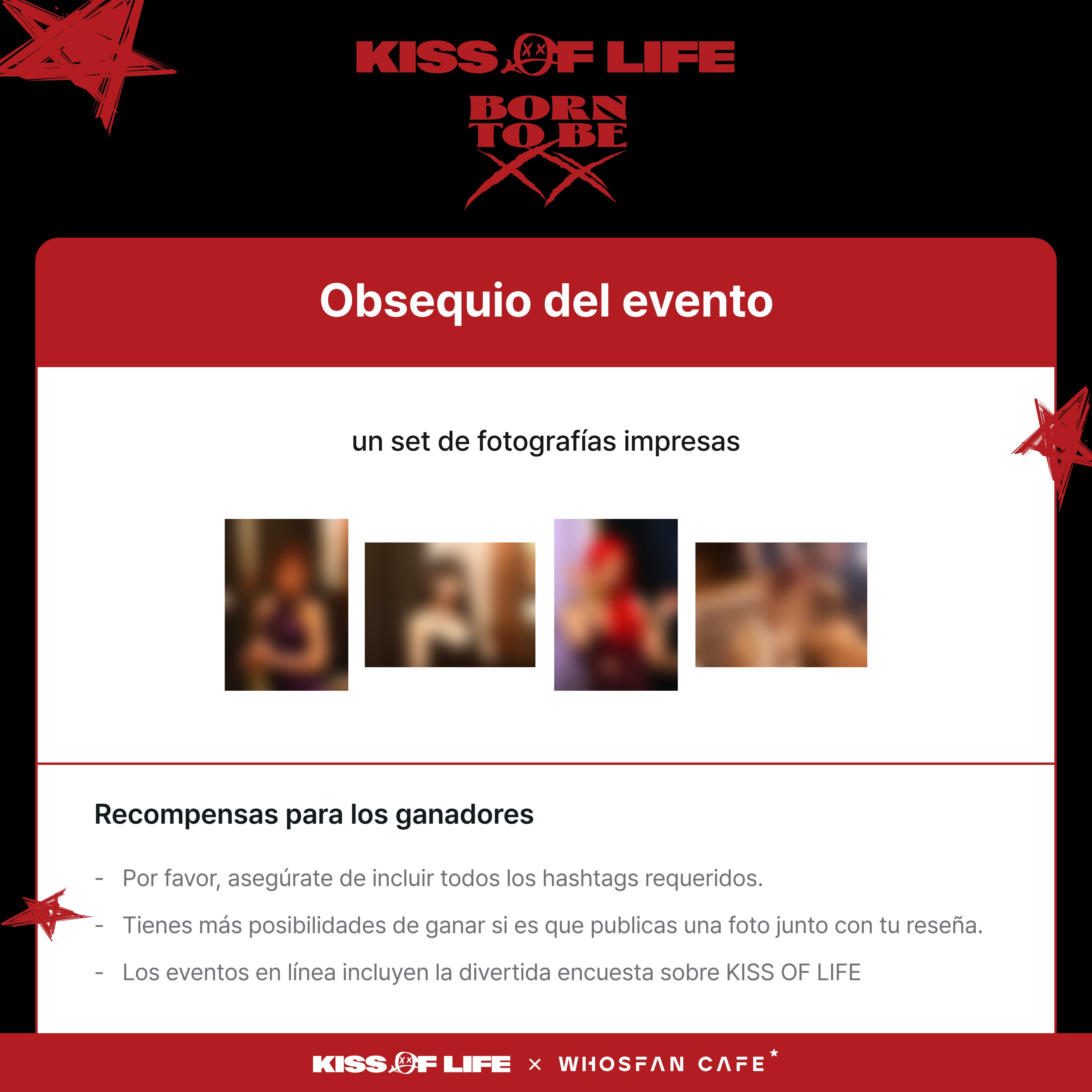 1. Visita Café temático oficial de [Born to be XX] de KISS OF LIFE y escribe una reseña en tus redes sociales