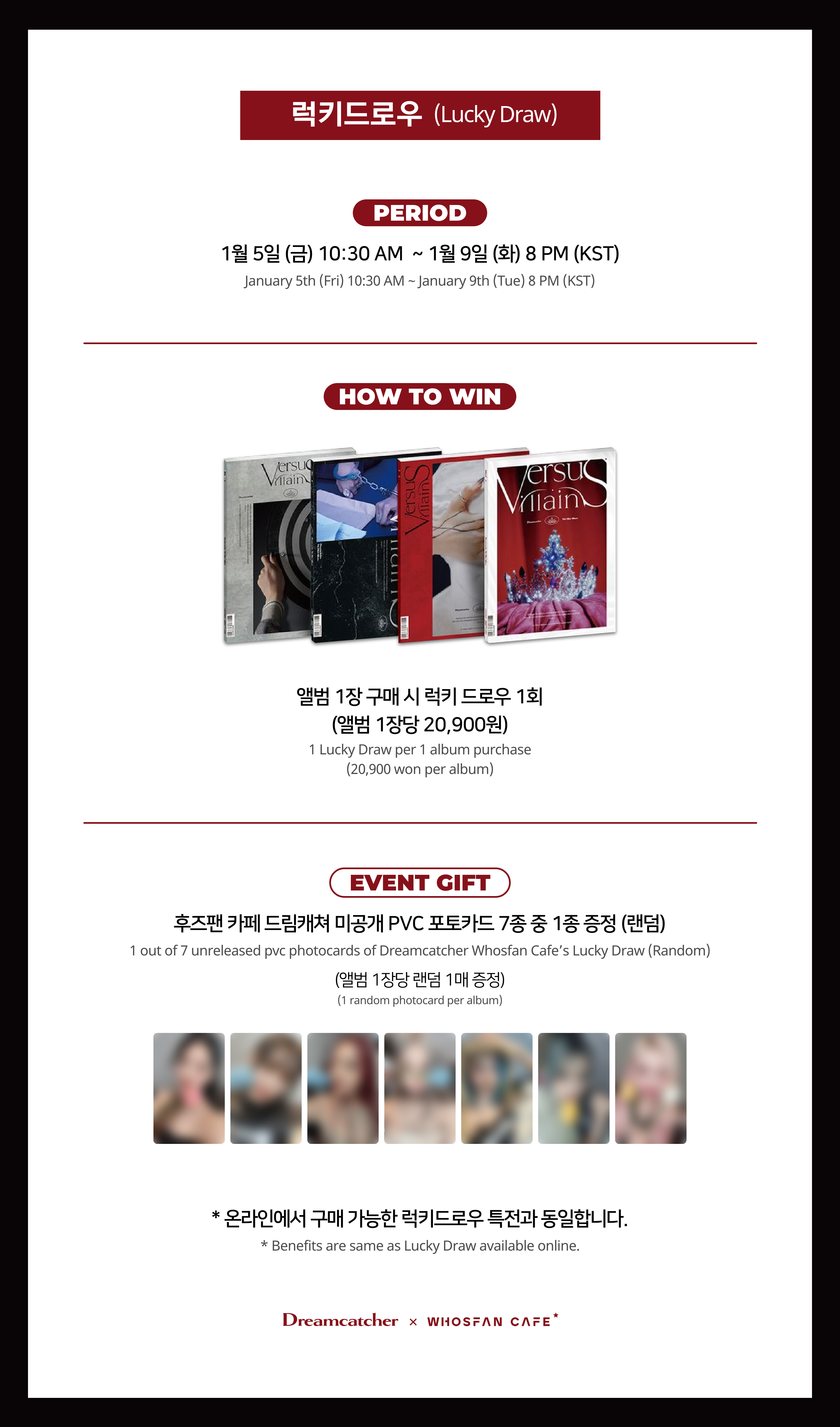 후즈팬 카페에서 드림캐쳐의 [VillainS] 활동을 기념하여 오피셜 테마 카페를 개최합니다.