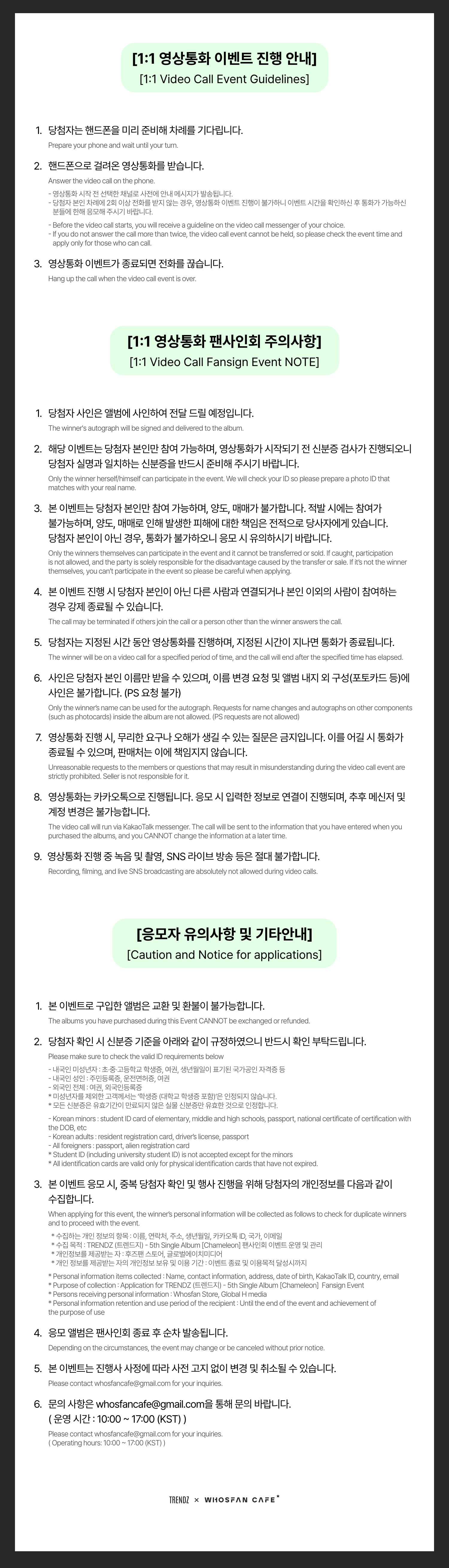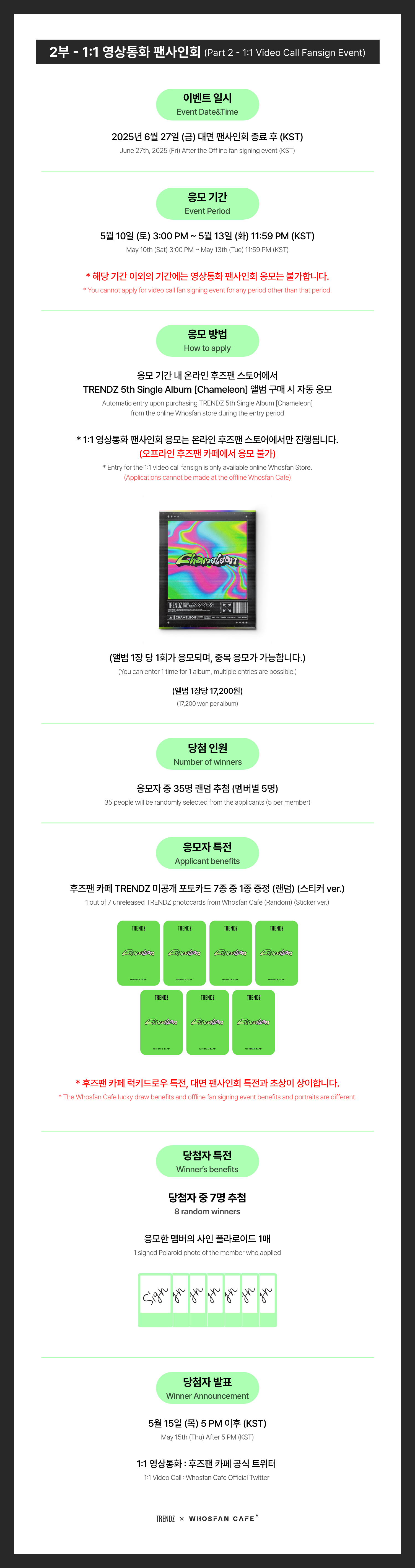 TRENDZ [Chameleon] 오피셜 테마 카페 대면 & 1:1 영상통화 팬사인회 이벤트