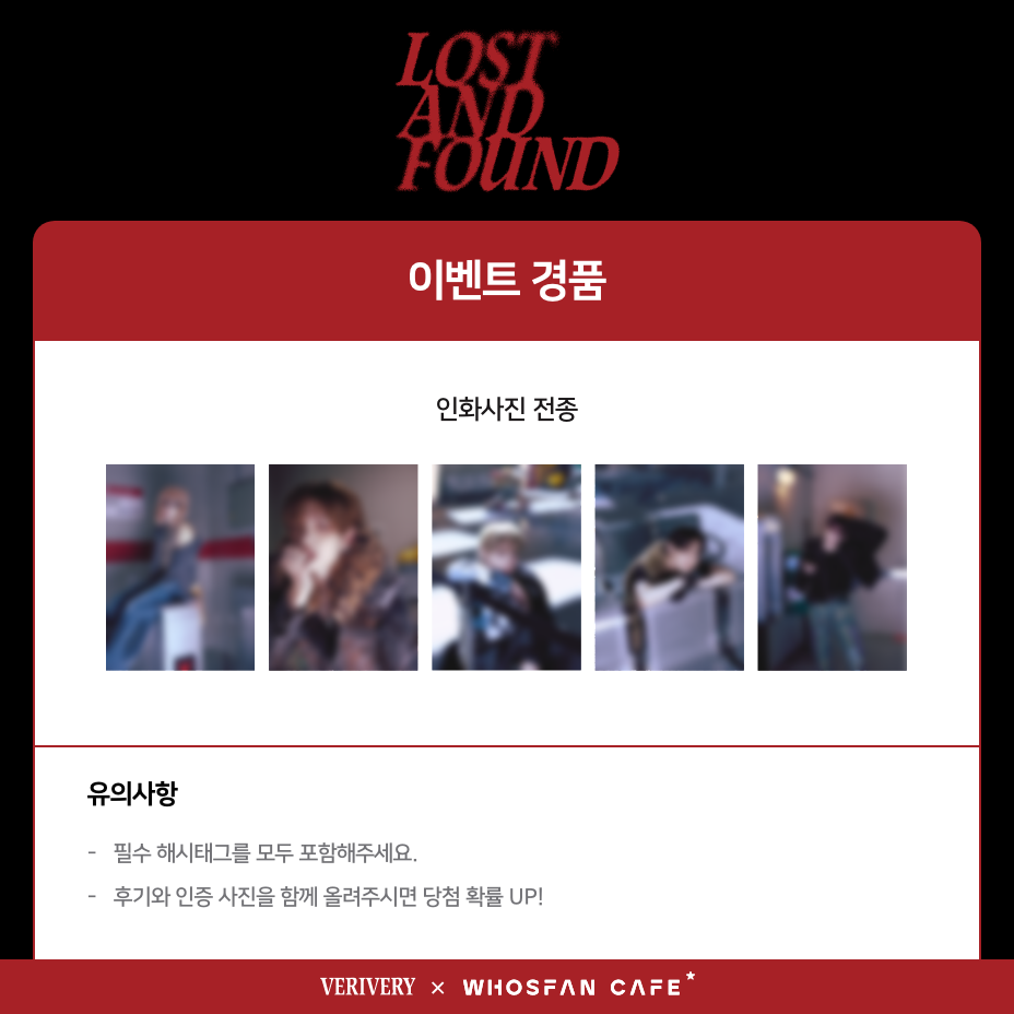 1. VERIVERY 4th SINGLE ALBUM [Lost and Found] 오피셜 테마 카페 방문하고 SNS에 후기 남기기